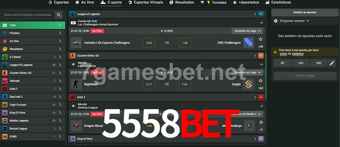 O 5558bet oferece uma grande seleção de opções de apostas em e-sports com probabilidades competitivas